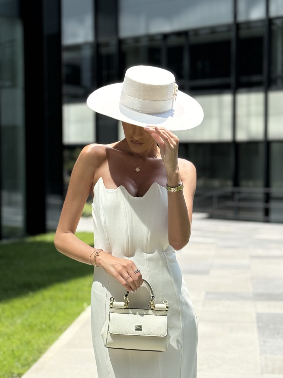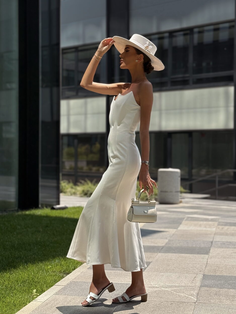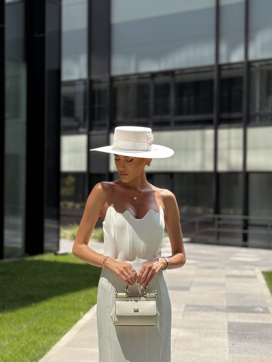 Această rochie pe corp este o declarație de rafinament și feminitate. Construită cu balene fine la baza decolteului, oferă susținere și o structură impecabilă ce conturează delicat bustul, amintind de eleganța corsetelor clasice. Croiala mulată urmează linia corpului, accentuând silueta și adăugând o notă sofisticată, perfectă pentru apariții memorabile.